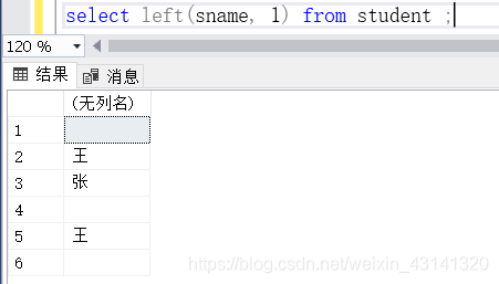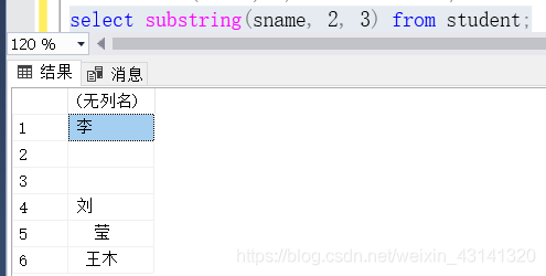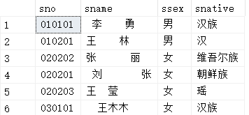 这里选出的结果有的为空是因为原关系中sname有些开头有空格。