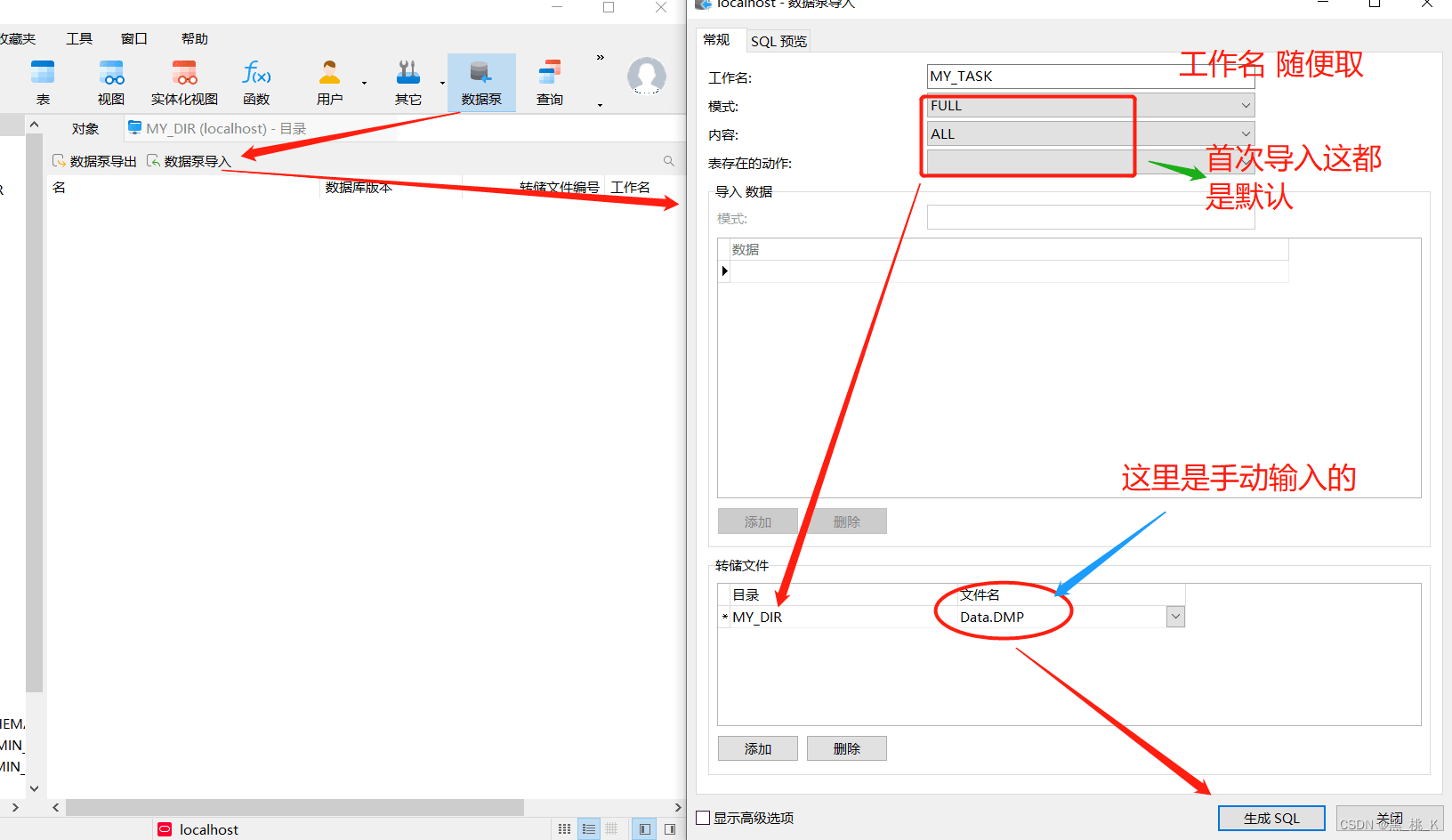 点击【数据泵】-》【数据泵导入】弹出如下页面