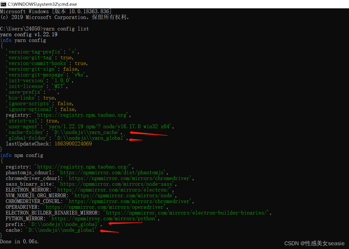 输入命令查看是否修改成功:yarn config list