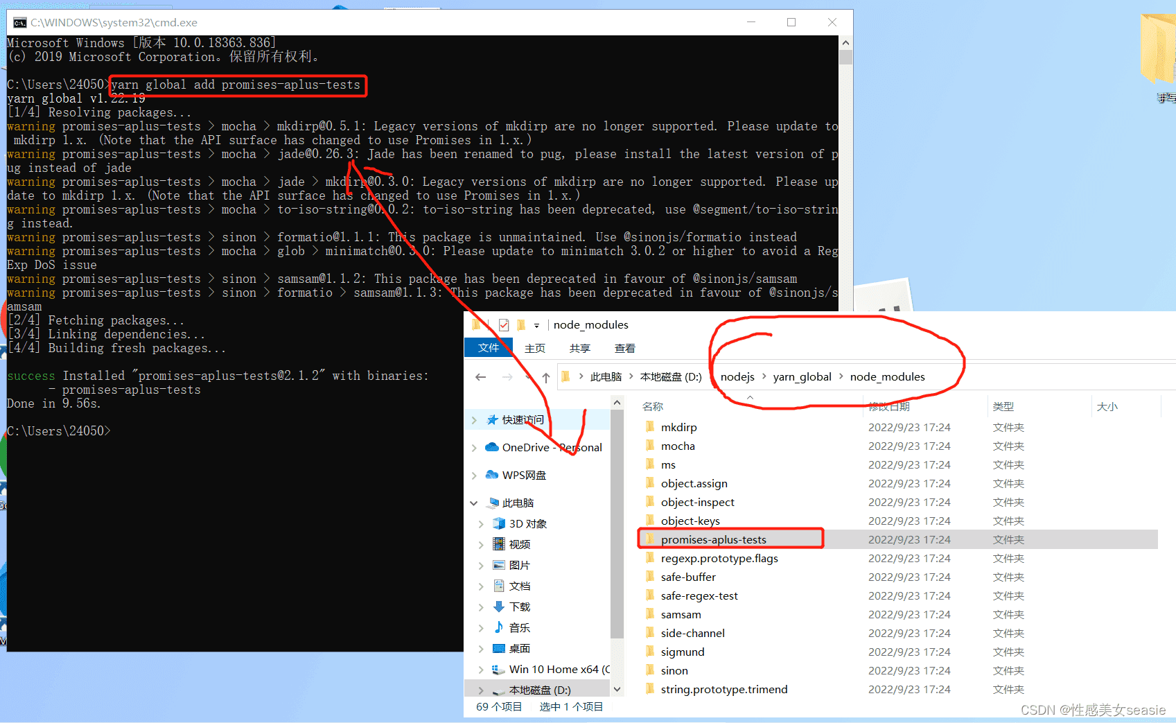 完全没问题,不会安在可恶的C盘了!现在也来修改一下 yarn global 时存放位置!
