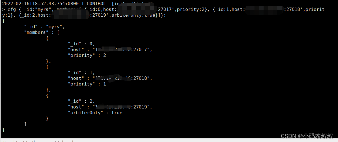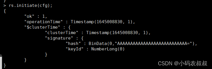 再使用:rs.initiate(cfg); 命令完成集群初始化