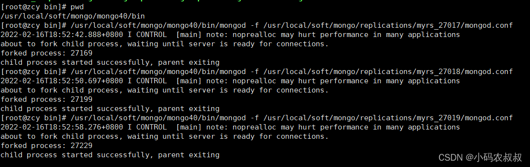 ./mongod -f /usr/local/soft/mongo/replications/myrs_27017/mongod.conf ./mongod -f /usr/local/soft/mongo/replications/myrs_27018/mongod.conf ./mongod -f /usr/local/soft/mongo/replications/myrs_27019/mongod.conf