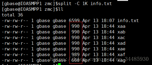 执行split -C 1k info.txt 发现文件不是均分成1K但是文件的内容是完整的,所以大家懂了吧