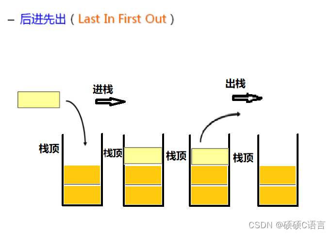 栈中的数据元素遵守后进先出LIFO(Last In First Out)的原则。