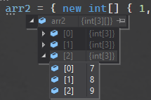 //第一层数组长度 int len2 = arr2.Length; //len2 = 3 //因为第一层中对象也是数组,所以取第二层数字长度获取具体的Length int len22 = arr2[0].Length; //len22 = 3