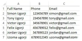 输出的数据看起来比之前要好得多,我们将列标题(全名、QQ、电子邮件)作为该数组的第一个元素。