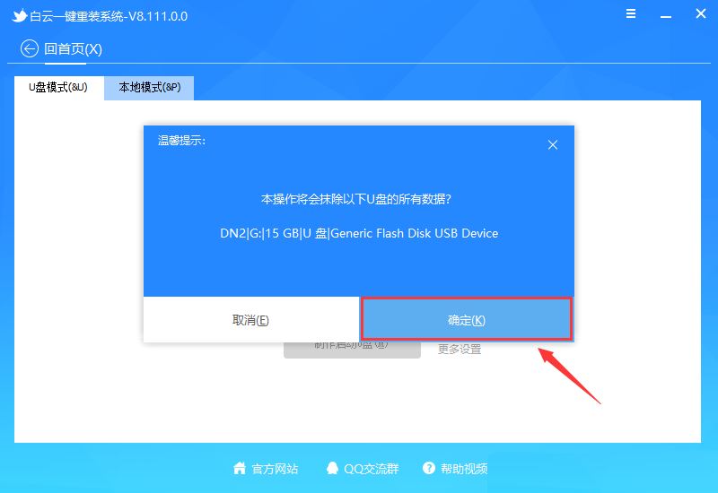 1)8G或以上大小的U盘,白云U盘启动盘制作工具