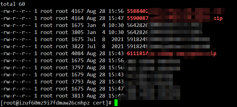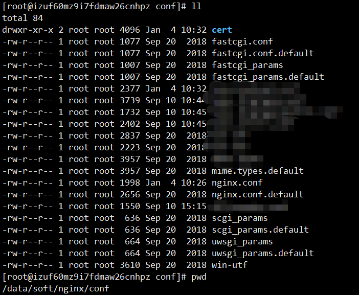 连接服务器,将下载的证书Zip文件发到nginx/conf文件夹下,我个人的习惯是在conf文件夹下新建了cert文件夹,专门用来放ssl证书的