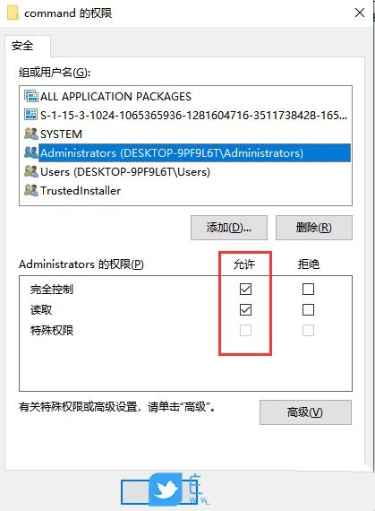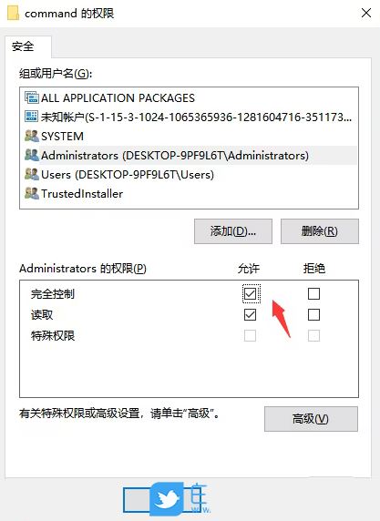 2、完全控制这里没勾选,所以没权限修改编辑;
