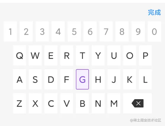 需要注意的是,英文和数字键盘,默认状态下,顶部的数字是禁止的,也就是输入完地区代码之后,数字的禁止状态才会释放;由于距离左右的边距不同,其在数据源的判断上也会有不同,这个也是需要注意的。