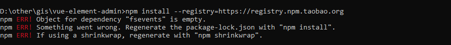npm ERR! Object for dependency "fsevents" is empty.