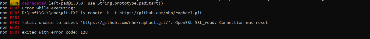 fatal: unable to access 'https://github.com/nhn/raphael.git/': OpenSSL SSL_read: Connection was reset