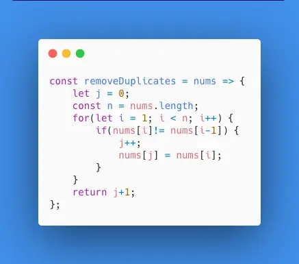 给定一个排序数组,你需要在原地删除重复出现的元素,使得每个元素只出现一次,返回移除后数组的新长度。不要使用额外的数组空间,你必须在原地修改输入数组并在使用 O(1) 额外空间的条件下完成。