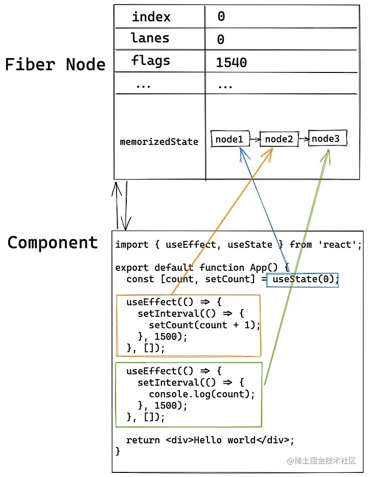 };fiber与Hooks的关系(懒得画图了,引用了Understanding the Closure Trap of React Hooks)