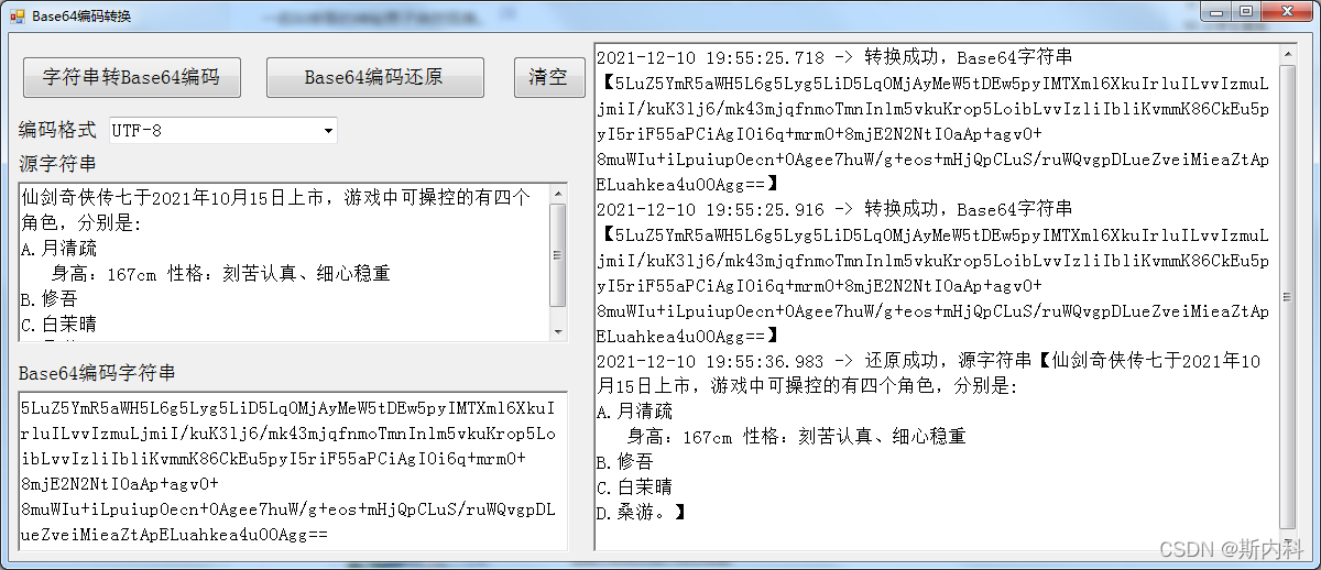 考虑到初始源字符串可能是任何文本编码的【中文GBK,Unicode,ASCII等】,因此Base64字符串加密只处理字节数组【字节数组通过encoding.GetBytes(string src)获得】。