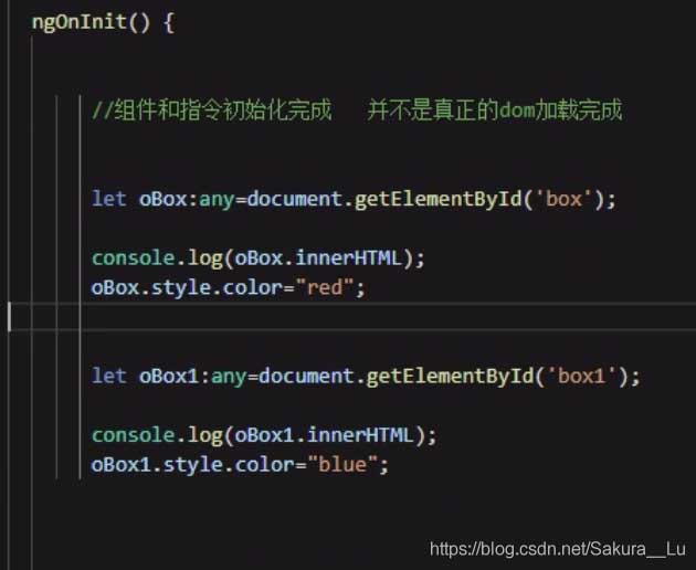 这个时候oBox1无法获取到DOM节点,这是因为ngOnInit方法只是初始化angular的组件和指令,并不是真正的dom加载完成。