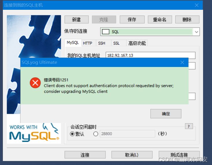 出现1251的主要原因是由于mysql版本的问题,mysql8.0版本,与mysql8.0以下版本的加密方式不同,导致错误产生。
