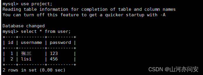 然后在我们的docker容器内查询mysql数据如下图: