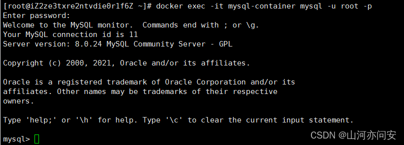 1.1.2 进入Mysql容器并登录Mysql