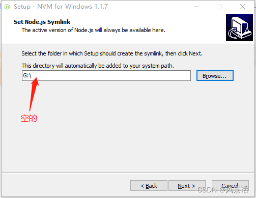 在安装nvm的时候如果修改了nodejs的安装路径,仔细观察的话会发现,它会给你漏掉nodejs,比如我选择G盘。