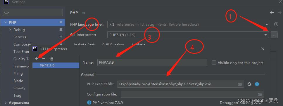 2、phpstudy中切换不同版本php版本,有些版本不支持xdebug(如php8.0.2),有些已经自带了(如php7.3.9)。已经自带的只需要在php.ini中调用