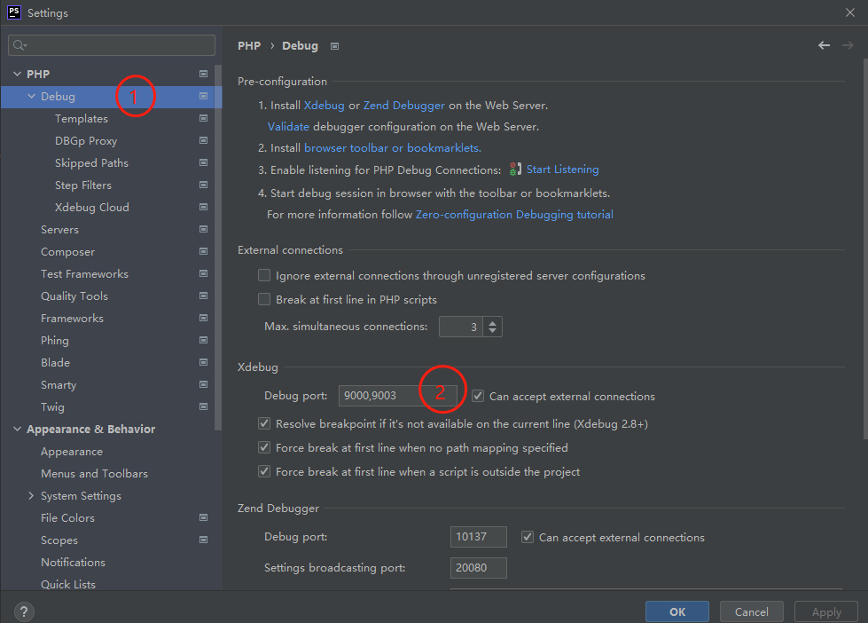 [Xdebug] zend_extension=D:/phpstudy_pro/Extensions/php/php7.3.9nts/ext/php_xdebug.dll xdebug.idekey=phpstorm xdebug.remote_enable = On xdebug.remote_host=localhost ;xdebug.remote_port 默认值为9000,这里需要跟phpstorm配置一致,下面有说明 xdebug.remote_port=9000 xdebug.remote_handler=dbgp xdebug.auto_trace = On