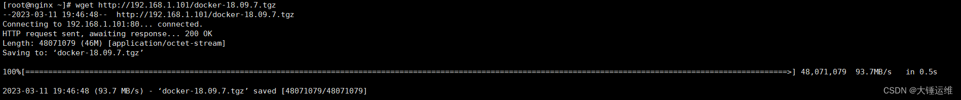 2、模拟其他服务器来文件服务器wget下载文件(喔的天,93M/S)