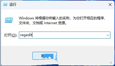 2、运行窗口,输入【regedit】命令,按【确定或回车】打开注册表编辑器;