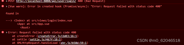 最近在做一个项目,后端写了一个登录接口,postman可以正常请求。但我axios发请求出现400错误"Error: Request failed with status code 400"