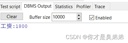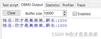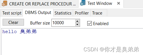 - 如果你不能打印输出,需要开启 set serveroutput on 因为 默认情况下,输出选项是关闭状态。