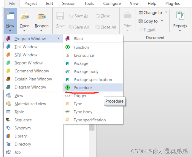 - 第一种方式: New → Program Window → Procedure