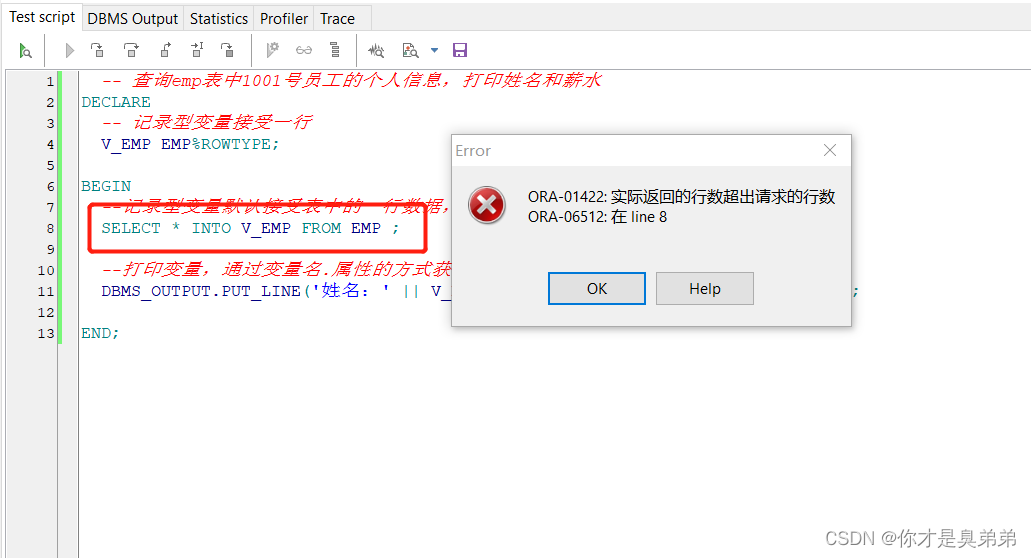 SELECT 'CSDN你才是臭弟弟' INTO V_ADDR FROM DUAL; --不会有人不知道DUAL吧,DUAL 是一个用于描述 Oracle 数据库中的虚拟表的关键字