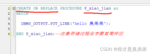 - 需要注意的是: put_line('hello mr.xiao'); 中 一定是 ' ' 号,否则会报错的。