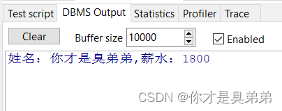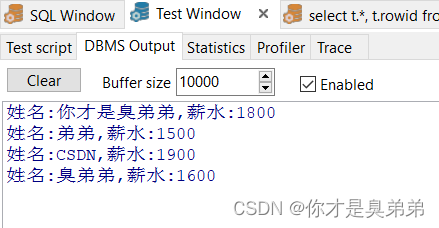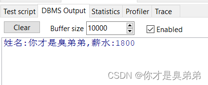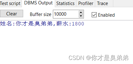 DBMS_OUTPUT.PUT_LINE('姓名:' || V_NAME || ',薪水:' || V_SAL);