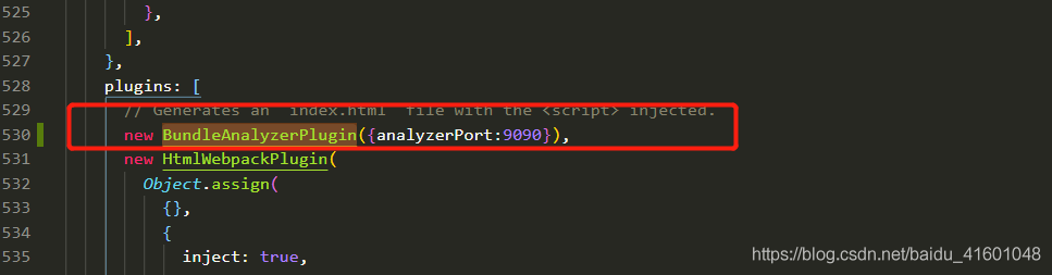 特别注意这里new BundleAnalyzerPlugin的时候要找准位置;和module参数同级的plugins;[]才是配置plugin的地方