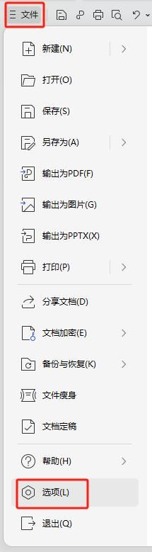 第四步:希望保存后再打开不显示修订,在顶部菜单栏点击“文件”,“选项”。