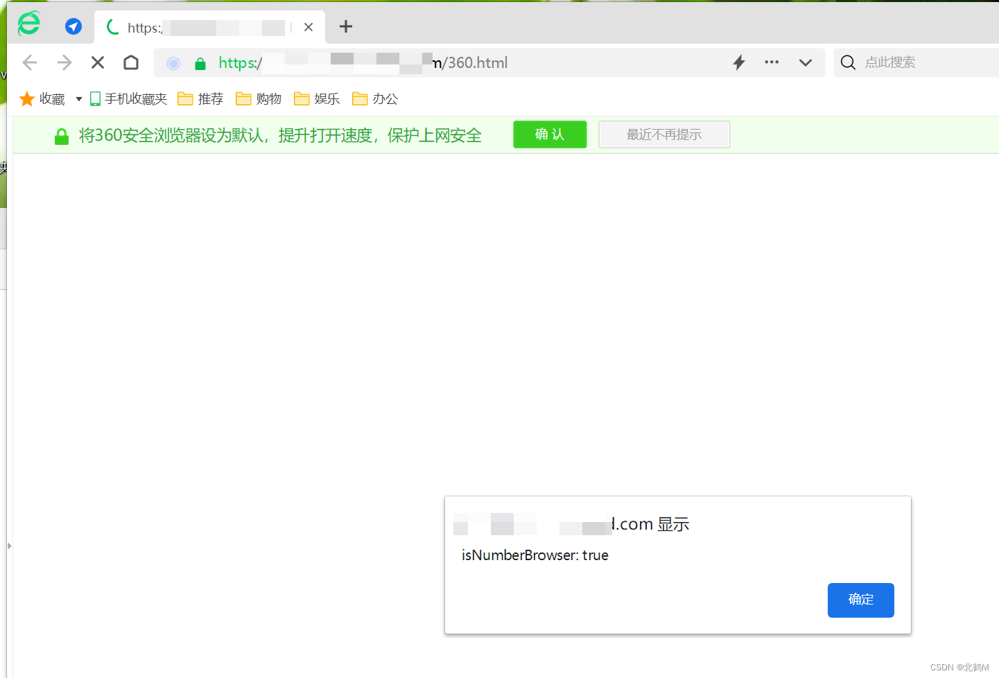 <script> function checkIeForNum() { return ((navigator.msPointerEnabled == undefined ? true : navigator.msPointerEnabled) && (navigator.msDoNotTrack == 1 || window.doNotTrack == 1) && ((Number(window.screenX) ? (window.screenLeft - window.screenX != 8) : false) || ((navigator.userAgent.indexOf('MSIE 7.0') != -1 || navigator.userAgent.indexOf('MSIE 8.0') != -1) && console.count == undefined))); } function checkChromeForNum() { var uas = navigator.userAgent.split(' '), result = false; if (uas[uas.length - 1].indexOf('Safari') == -1) { return result; } for (var key in navigator.plugins) { if (navigator.plugins[key].filename == 'np-mswmp.dll') { return !result; } } return result; } function isNumberBrowser() { if (navigator.userAgent.indexOf('Safari') != -1) { return checkChromeForNum(); } else { return checkIeForNum(); } } alert("360浏览器检测状态:" + isNumberBrowser()) </script>