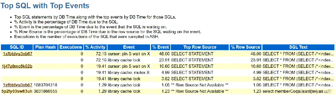 最后关键点a:下面报告里的sql_id与事件与v$active_session_history里查出来的结果相同,进一步证明事件与此SQL的关联性。