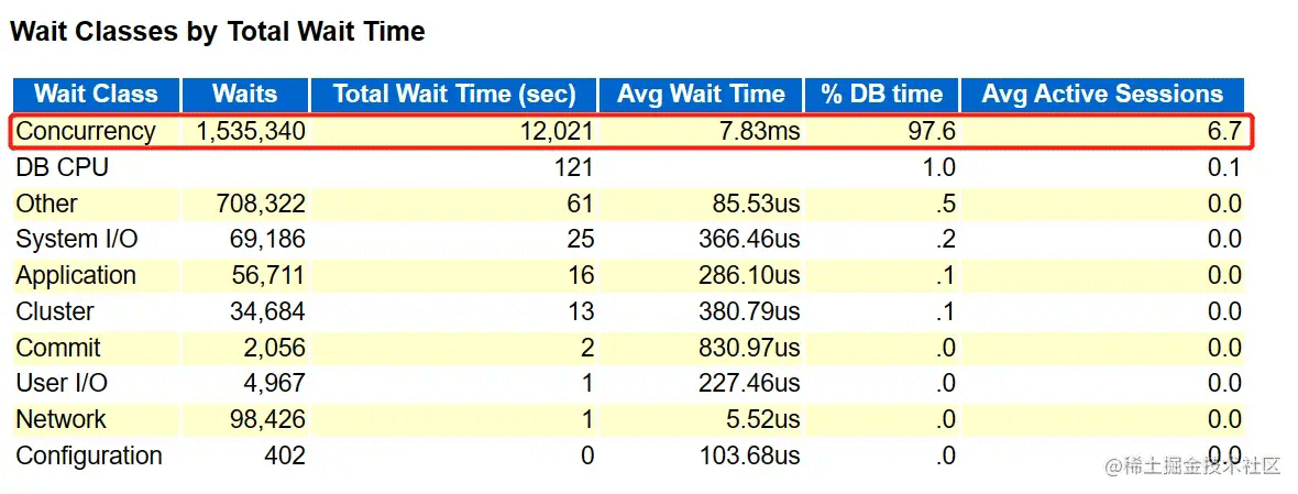 当然也要结合我们的AWR报告:(两份为同时间段,上一份为有争用,下一份为正常情况,报告太长,只截取了关键点)