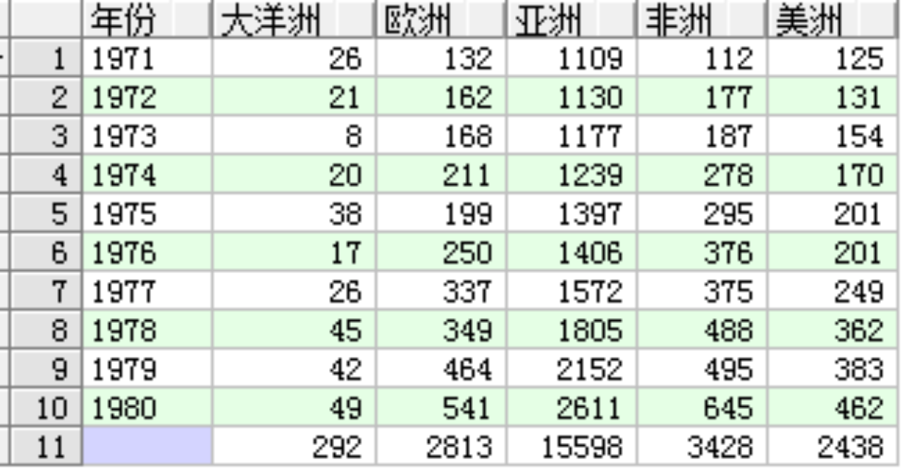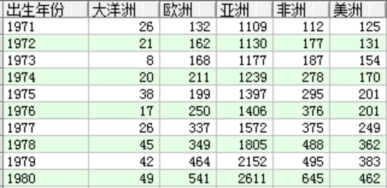 例如,员工信息表中有出生年份和州名,需要统计不同年份、不同大洲的人数。