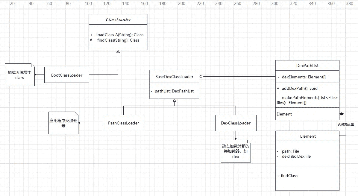 ClassLoader、BootClassLoader、BaseDexClassLoader等之间关系,如下如: