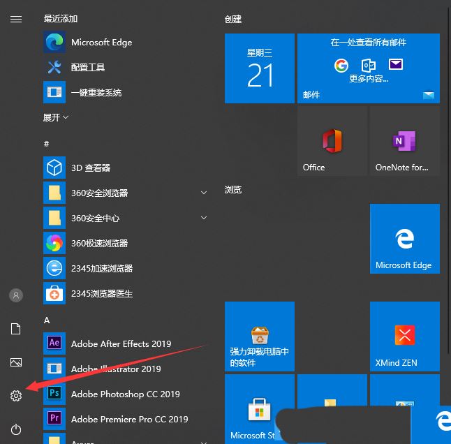 1、按【Win】键,或点击左下角的【开始菜单】,在打开的菜单项中,点击电源按钮上方的【设置】;
