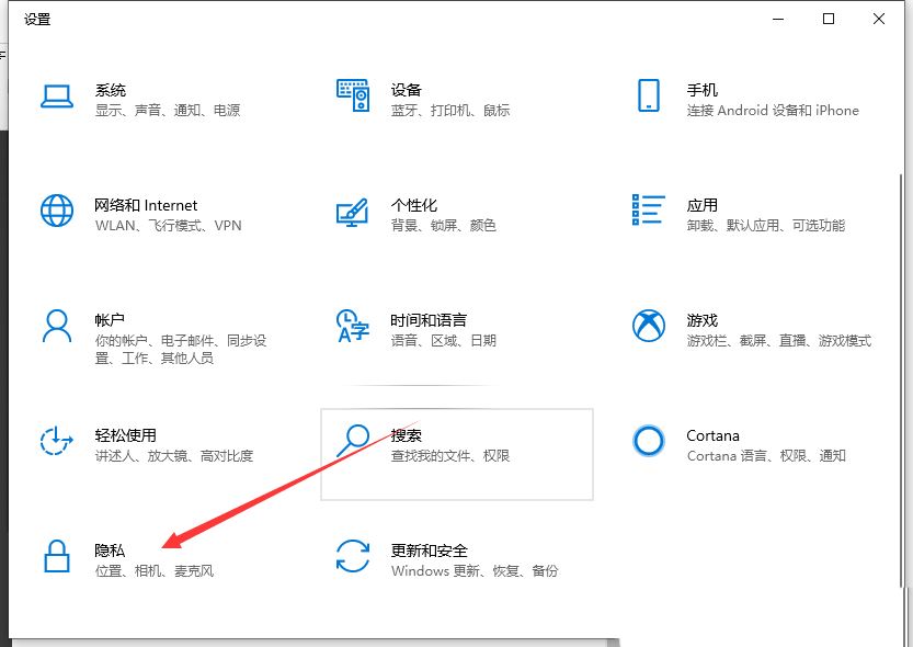 2、Windows 设置(Win+i)窗口,点击【隐私(位置、相机、麦克风)】;