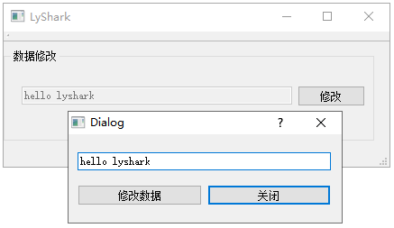 来拿到数据,而第二种方式则是通过发送信号的方式将数据投递给父窗体,这两种方式都可以,读者可根据自身需求来选择不同的通信方式。