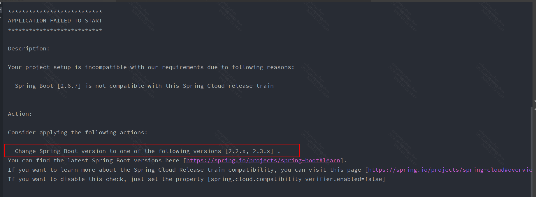 如上所示,由于spring-cloud-starter-netflix-hystrix 2021年后不更新,此依赖包对应的springCloud版本和springboot版本不匹配,会报版本不匹配异常,需要禁用安全检查功能,如下配置在application.yml文件中:
