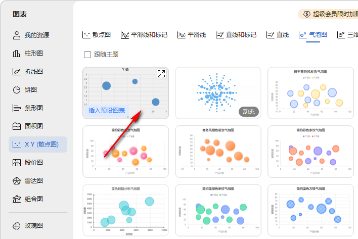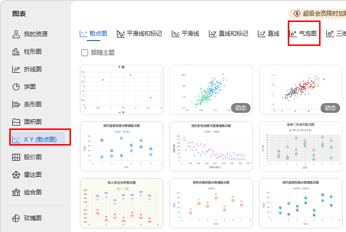2.这时候,我们就可以进入到页面中,将页面左侧的【散点图】按钮点击一下,然后在右侧选择【气泡图】。