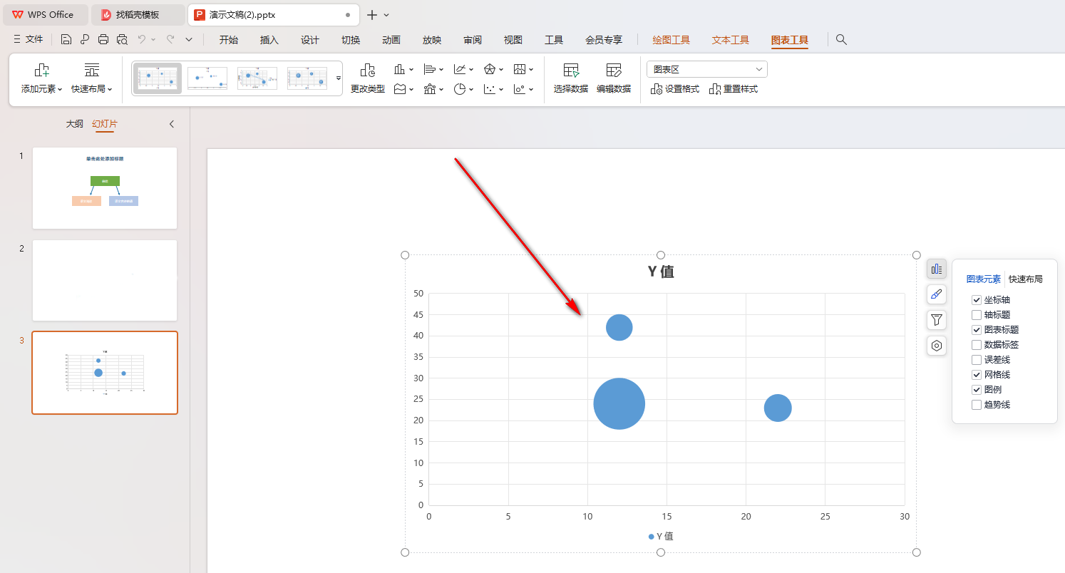 6.随后直接返回到演示文稿中,可以查看到气泡图会根据你编辑的数据进行相应的更改,如图所示。
