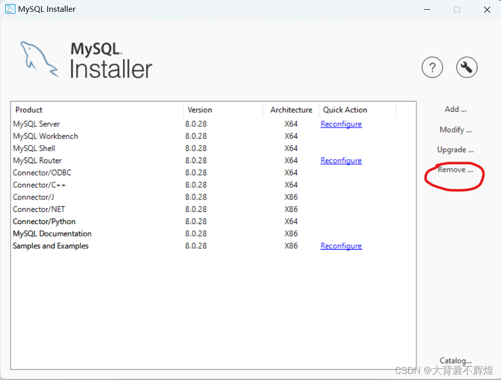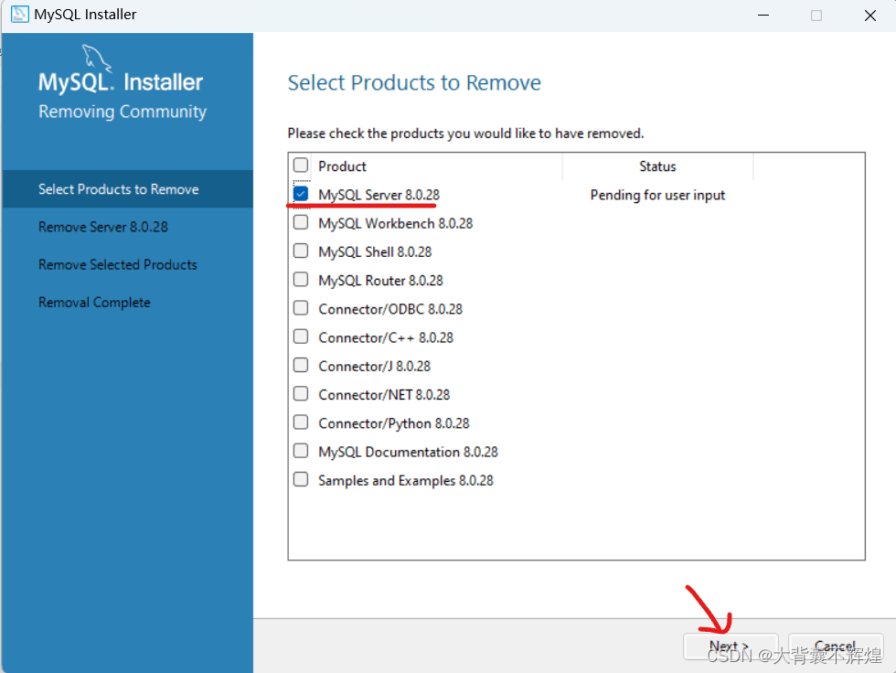 3.移除已安装的MySQL server ,点击next移除。