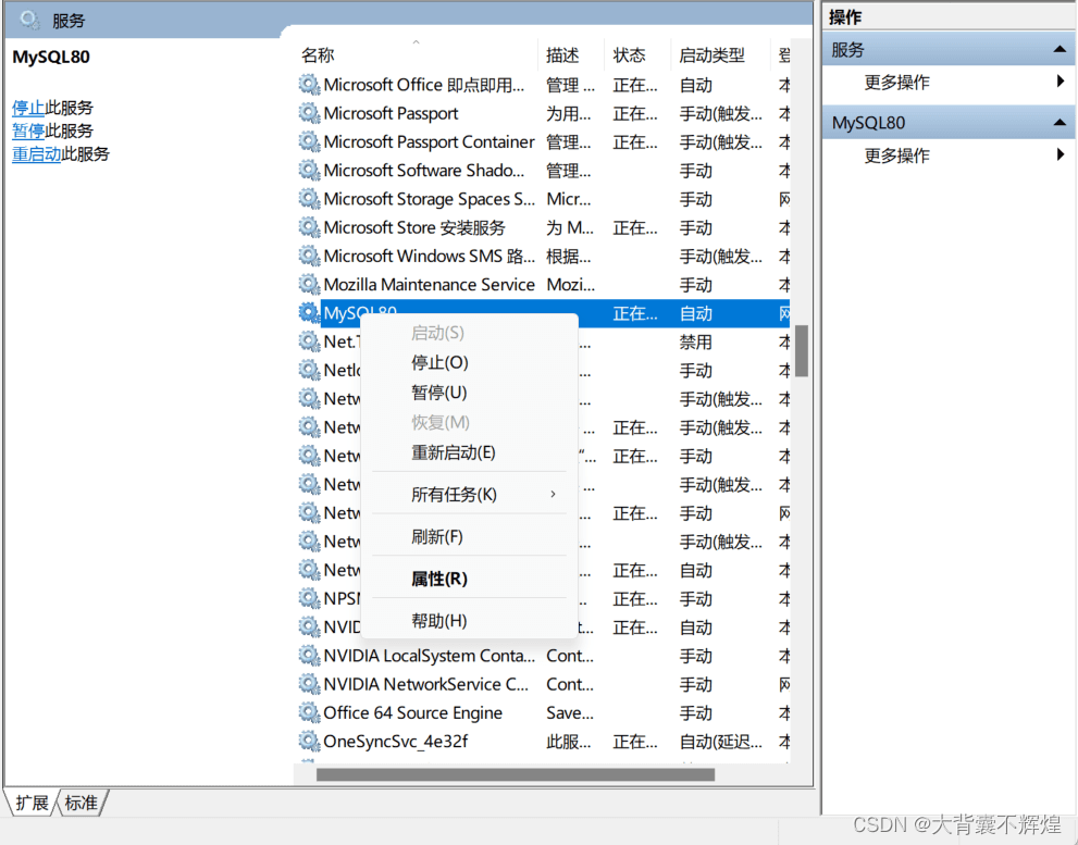 5.找到MySQL右键,点击属性。