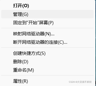 2.右键我的电脑,点击管理。